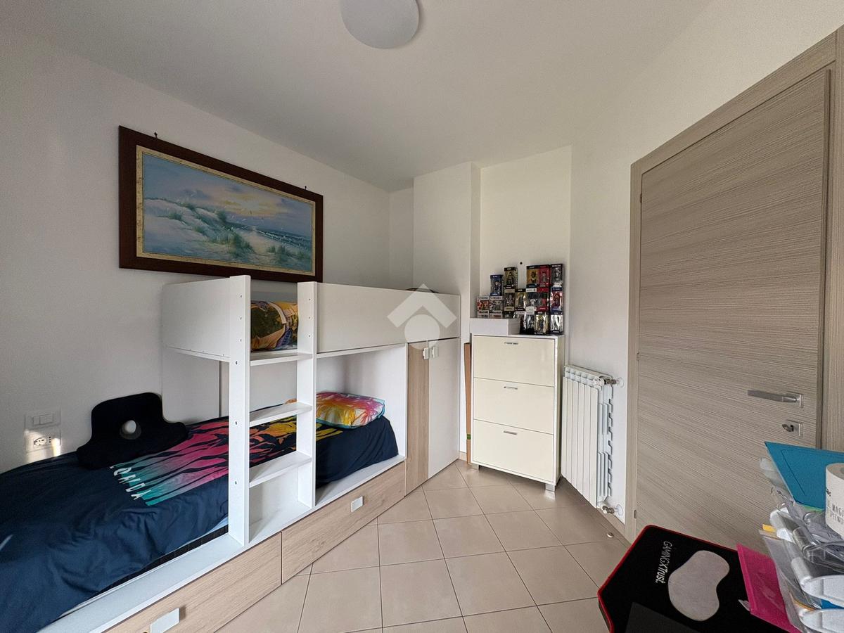 La zona notte si compone di una camera matrimoniale, una cameretta, un bagno ocn box doccia e un secondo bagno di servizio.
